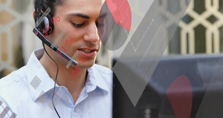Business Professionals Using Headsets With Digital Data Overlay Videos