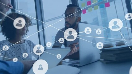 Business Professionals Using Tech With Digital Network Overlay Videos