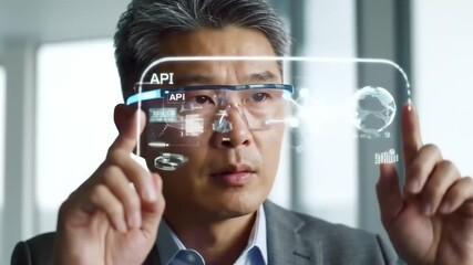 Business Professionals Using Tech With Digital Network Overlay Videos