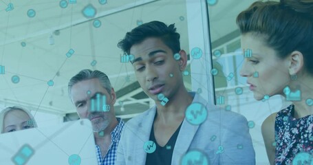 Business Professionals Using Technology With Digital Overlay Videos