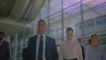 Business Professionals Walking With Digital Data Overlay Videos