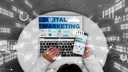 Business Team Analyzing Data On Laptop With Digital Interface Elements Videos