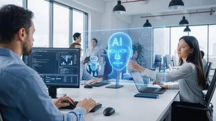 Business Team Analyzing Data With Digital Interface Holograms Videos