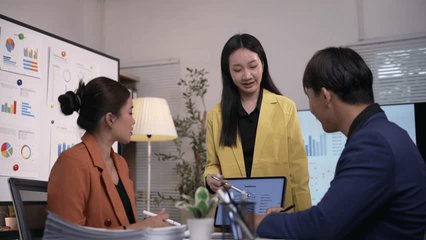 Business Team Analyzing Digital Trends On Screen Surface Videos