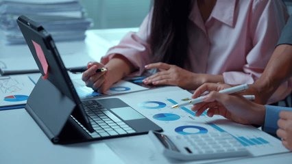 Business Team Analyzing Financial Data On Tablets Videos