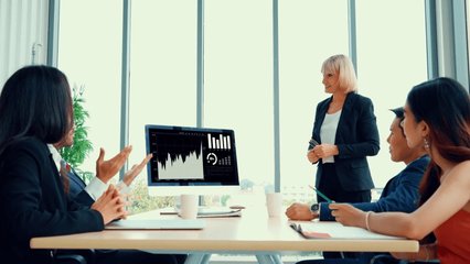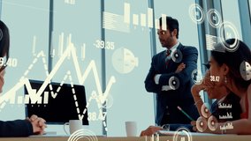Business Team Analyzing Financial Data Visualization In Modern Office Videos