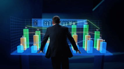 Business Team Analyzing Financial Data With Augmented Reality Videos