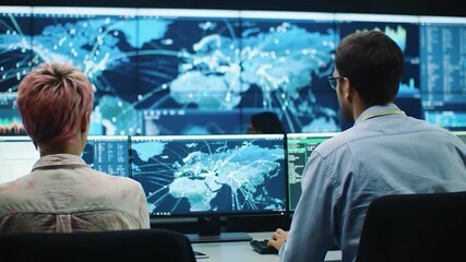 Business Team Collaborating On Global Data Analysis With Digital Map Videos