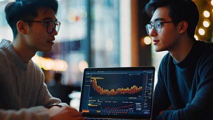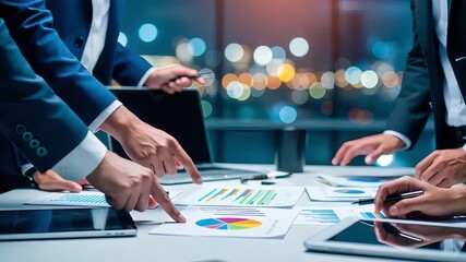 Business Team Collaborating Over Digital Financial Data Videos