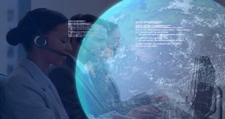 Business Team Collaborating With Digital Data Interface Overlay Videos