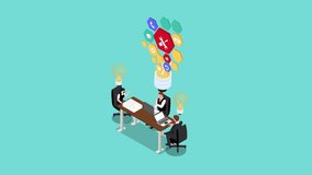 Business Team Collaborating With Digital Interface Icons Videos
