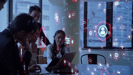 Business Team Collaborating With Digital Network Graphics Videos