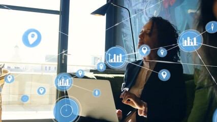 Business Team Collaborating With Interactive Line Chart Overlay Videos