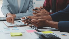 Business Team Discussing Data Analytics With Overlay Graphics Videos