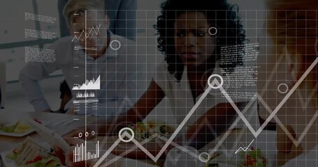 Business Team Discussing With Data Visualization Overlay Videos