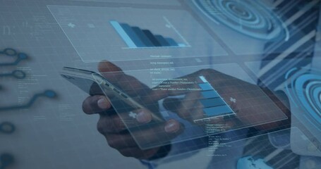 Businessman Analysing Data On Smartphone With Code Overlay Videos