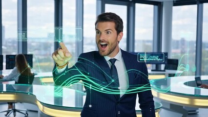 Businessman Analyzing Data In Modern Virtual Interface Environment Videos