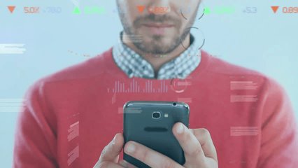 Businessman Analyzing Data On Smartphone With Global Financial Visuals Videos