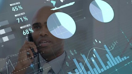 Businessman Analyzing Data With Digital Graphs Overlay Videos
