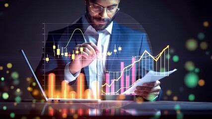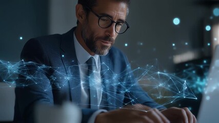 Businessman Analyzing Data With Glowing Network Overlay Videos