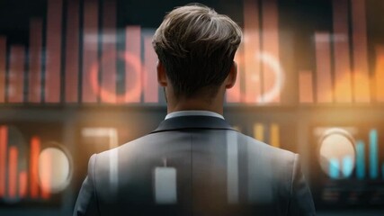 Businessman Analyzing Digital Data On Screen Videos