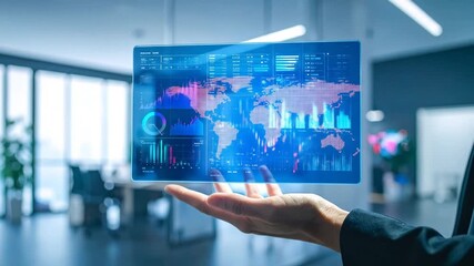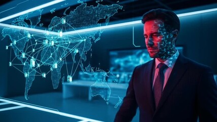 Businessman Analyzing Digital Data On World Map Interface Videos