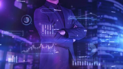 Businessman Analyzing Digital Data With Virtual Analytics Videos