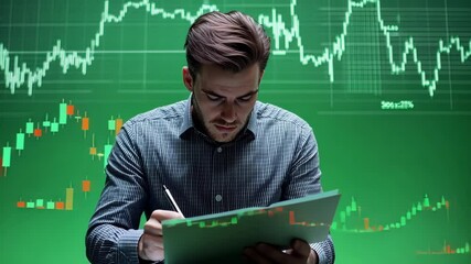 Businessman Analyzing Financial Data And Taking Notes Videos