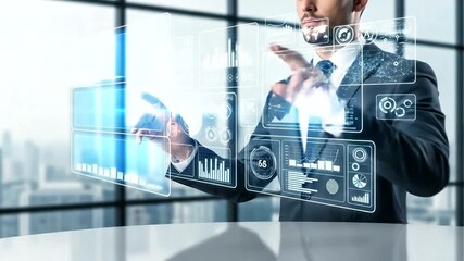 Businessman Analyzing Financial Data Visualization Interface Videos