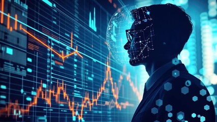 Businessman Analyzing Financial Data With Computer Graphics Overlay Videos