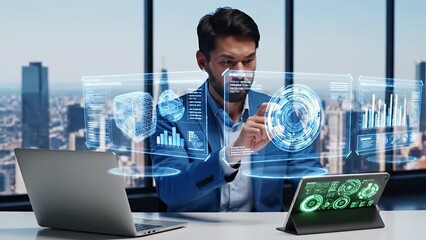Businessman Analyzing Financial Data With Digital Display Interface Videos