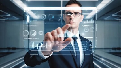 Businessman Analyzing Financial Data With Digital Interface Graphics Videos