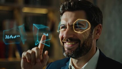 Businessman Analyzing Financial Data With Global Interface Videos