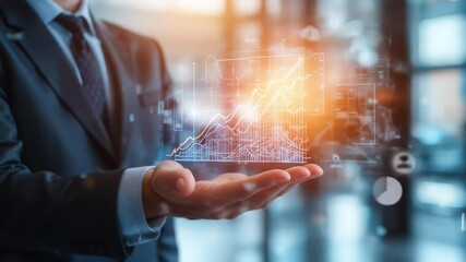 Businessman Analyzing Financial Growth With Virtual Data Videos