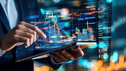 Businessman Analyzing Global Data Network With Tablet Videos