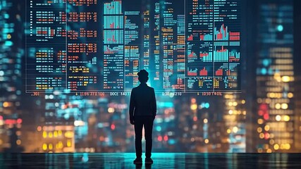 Businessman Analyzing Global Financial Data Visualizations Videos
