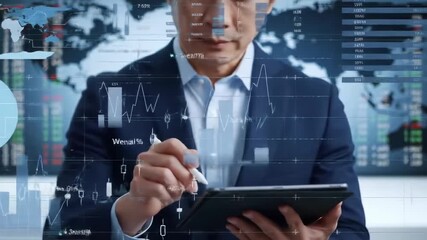 Businessman Analyzing Interactive Data Overlays Videos
