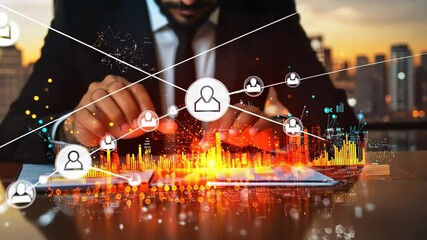Businessman Analyzing Tablet With Digital Data Overlay Videos