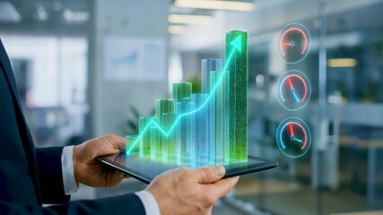 Businessman Analyzing Virtual Digital Data In Office Videos