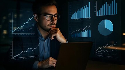 Businessman Analyzing Virtual Financial Data Projections Videos