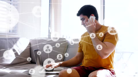 Businessman Connecting Digitally With Smartphone Hologram Icons Videos