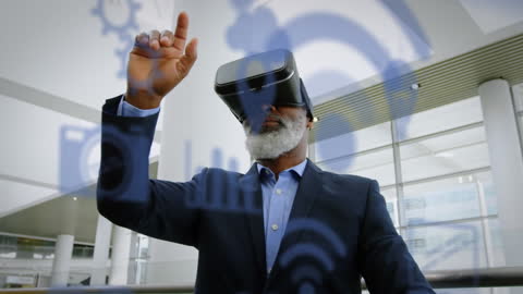 Businessman Engaging Digital Interface With Multimedia Icons Videos