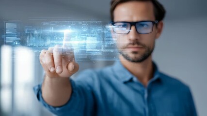 Businessman Engaging With Interactive Virtual Screen Interface Videos