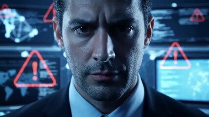 Businessman Facing Digital Security Concerns In Tech Network Videos
