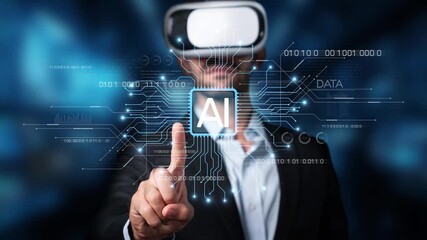 Businessman In Virtual Tech Interface With Data Visualization Videos