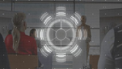 Businessman In Virtual Tech Interface With Data Visualization Videos
