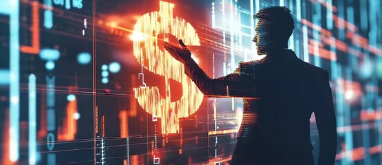 Businessman Interacting With Futuristic Digital Data Visualization Videos