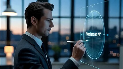 Businessman Interacting With Virtual Touchscreen Interfaces Videos