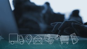Businessman Navigating Online Shopping Icons For E Commerce Videos