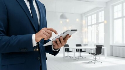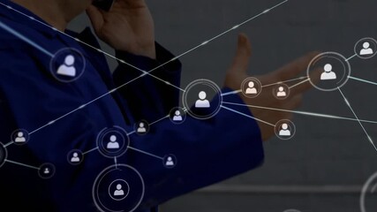 Businessman On Smartphone With Digital Network Overlay In Office Videos